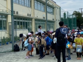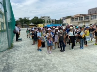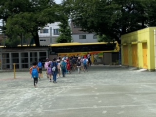 3年生の社会科見学のバスは8:35 学校前を出発しました。