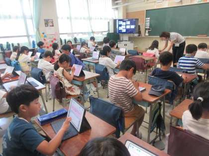 ロイロノートで、感想を書いたり、感じたりしたことをまとめています。