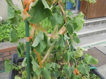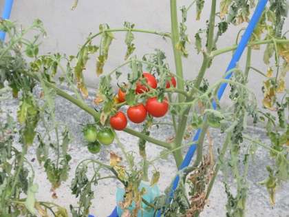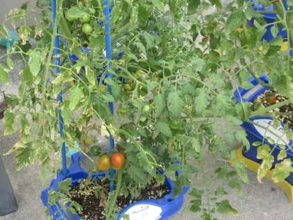 東校舎前には、2年生のミニトマトの鉢が並んでいます。。
