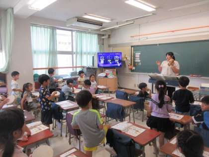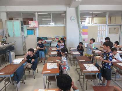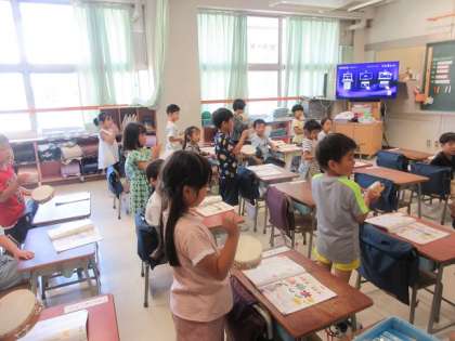 1年3組の音楽の時間です。