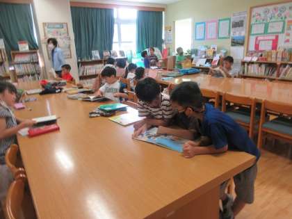 友達と一緒に読んだり、大きな絵本を読んだり、実に様々です。