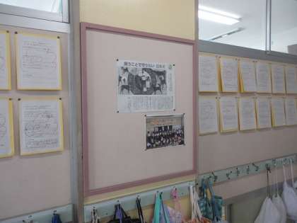 総合的な学習の時間や国語で学習した、新聞記事をもとに自分の考えを書きました。