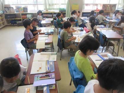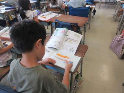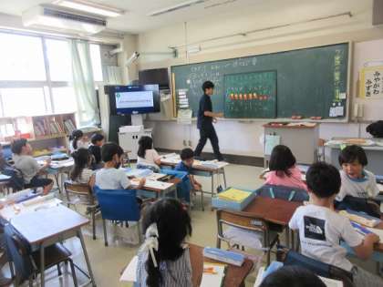 ひき算の問題を学習しています。算数ブロックを使いながら、数を減っていくことを実感していきます。