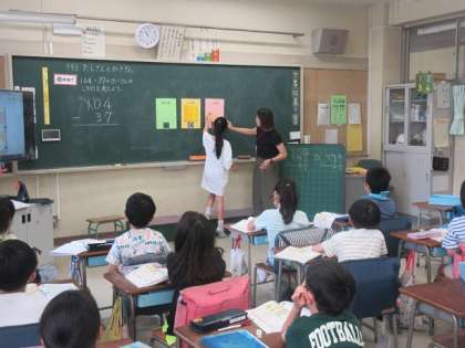 3ケタの数のひき算の学習です。これまで学習してきたやり方をもとに、算数タイルを利用しながら考えていきます。