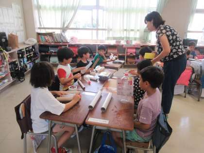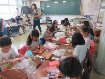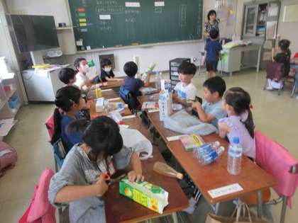 家庭から持ってきた材料を使って作ります。