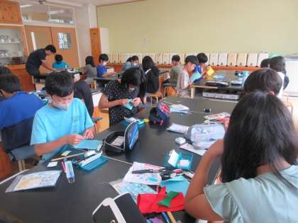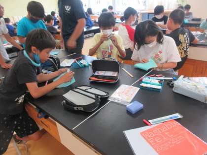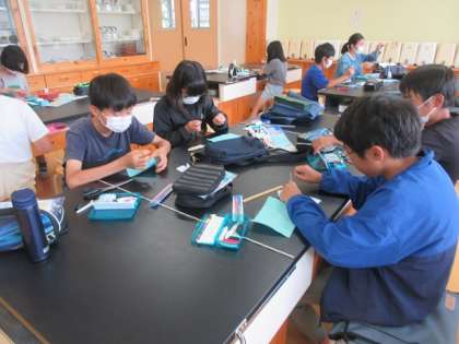 かがり縫いや玉結びなどの裁縫実習をしていました。