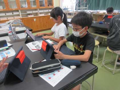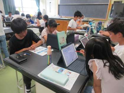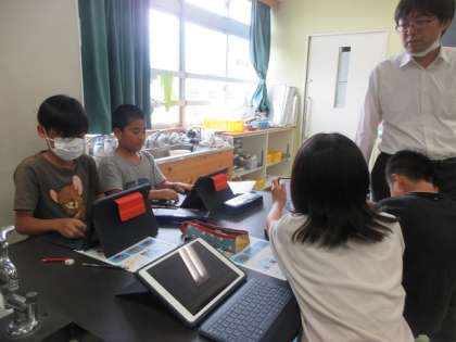 学習の振り返りや確かめを、キュビナなどタブレットを利用して進めています。