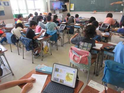 タブレットやカードを使って、お薦めの本の紹介をするようです。