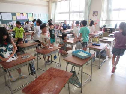 教室をきれいにしたり、自分の机の中を整理したり、長い休みを前に、整理と清掃です。