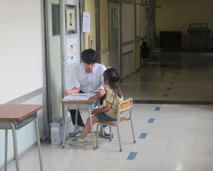 担任の先生と頑張ったことと次のめあてを確かめます。