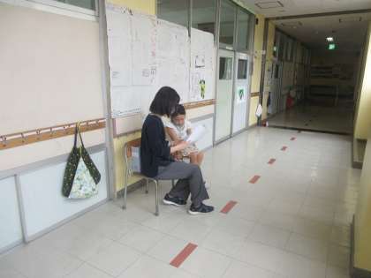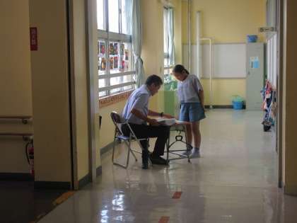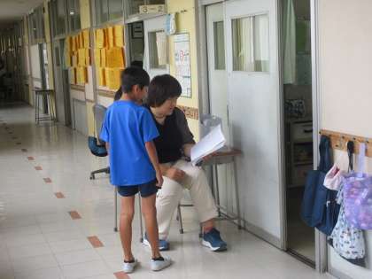 担任の先生から、成果と課題を丁寧に説明を聞きます。