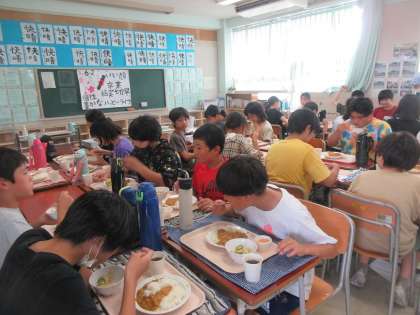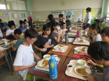メニューは、チキンカレーライス、ぱりぱりサラダ、ゼリーと千歳台でも人気メニューが並びました。