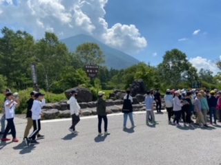 男体山をバックに学年写真を撮りました。この写真は卒業アルバムに使われます。