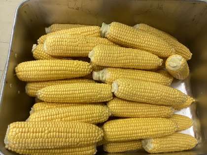 千葉県多古町からとりたてのとうもろこしが届き、むきたてとうもろこしは、とてもあまく好評でした。