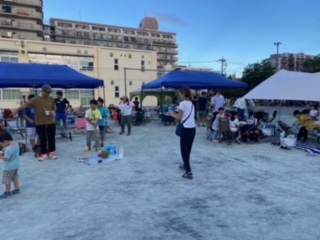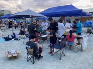 マシュマロを炙ったり、スイカ割り(たたき)をしたりと、ゆったりとした時間です。