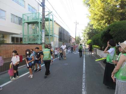 あいさつ隊や安全ボランティアの皆さんも一学期同様に活動しています。
