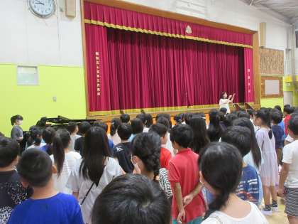 校歌は6年生のピアノ伴奏で絶交で合唱しました。