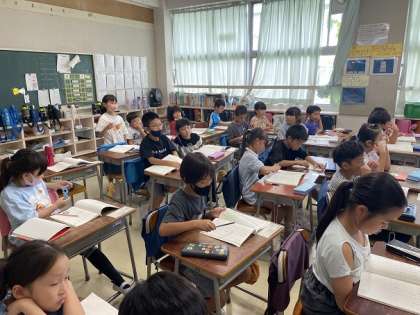 教科書に掲載されている詩を読みながら、言葉から伝わってくるイメージを発表しています。