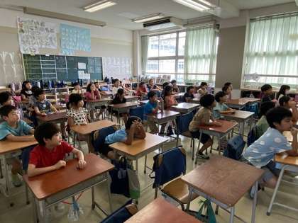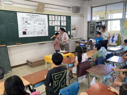 すごろくをやりながら、数を数えたり、あいさつのときの言葉を学習しています。