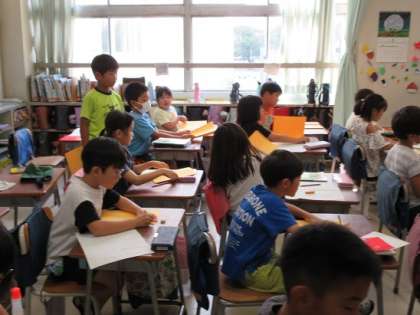 ワークシートを整理するファイルを色画用紙を使って作ります。