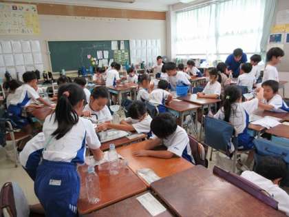 水のかさについての学習を実際に水を測りながらの体感型の学習です。