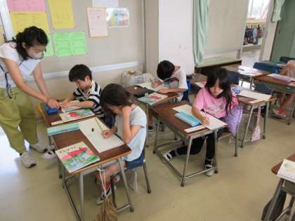 計算のやり方を理解した後は、基本となる問題を何問か解き、先生に出来栄えを確かめてもらいます。