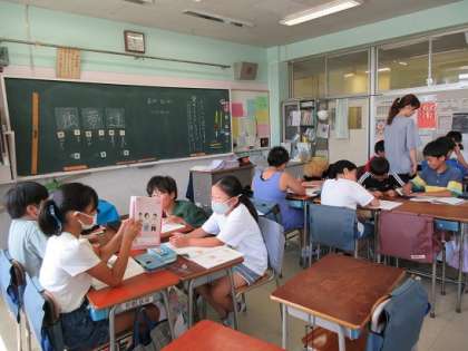 2者択一の課題について、少人数のグループ対戦での討論会に向けて準備をしています。