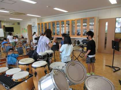 4人ぐらいでグループとなり、リズムアンサンブルを作っています。