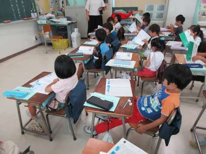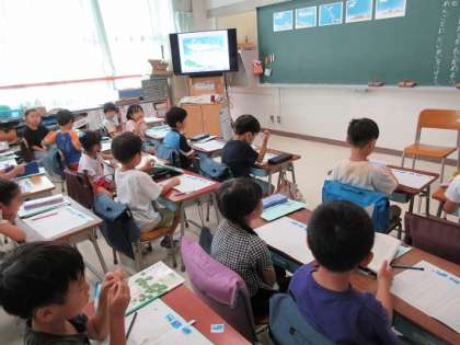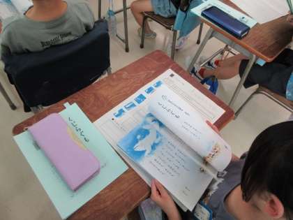 ワークシートに教科書の挿絵と同じ、クジラ雲の絵を張りました。