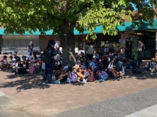 これから入園です。日陰を上手に探しながらの行動です。