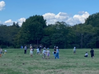 集合写真の撮影後は広い草原でクラス遊びです。日も翳り遊びには絶好のタイミングです。