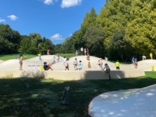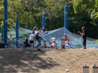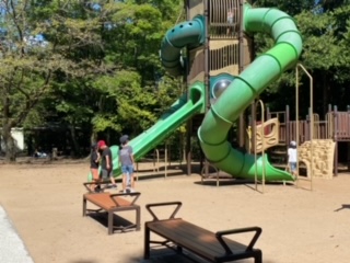 昭和記念公園には、大きな遊具があります。ネットや風船のような遊具で元気いっぱいで遊びます。