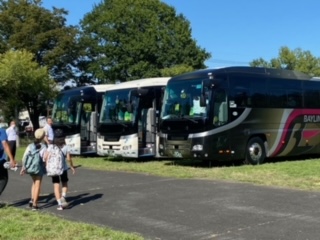 バスは千歳台に向けて14:30に現地を出発しました。15:30ごろに到着予定です。