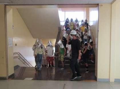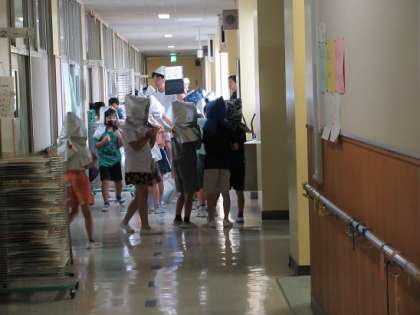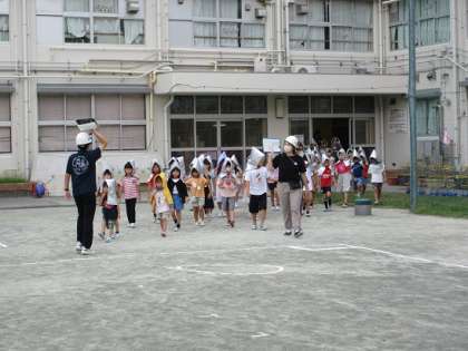 今月の避難訓練は、朝の時間に地震が発生した想定です。