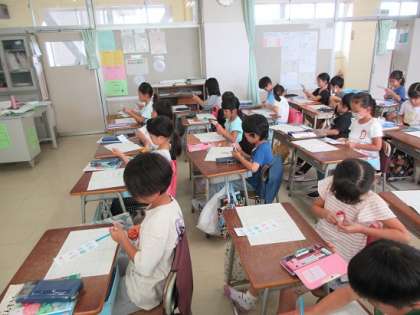 先生から配られらた紙には、いろいろな方氏をした絵が描かれています。