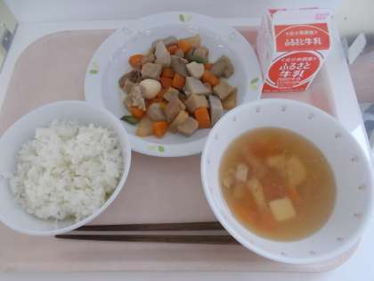 ごはん 豚肉と里芋のうま煮 吉野汁 牛乳