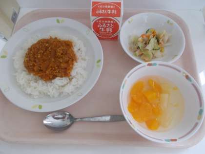 ドライカレーライス ツナサラダ フルーツポンチ 牛乳