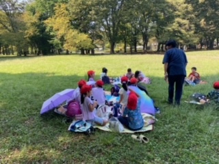 お弁当の後は、おやつタイムです。遠足のお楽しみですね。