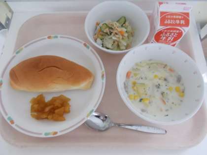 コッペパン 秋のおいもシチュー ツナサラダ 手作りりんごジャム