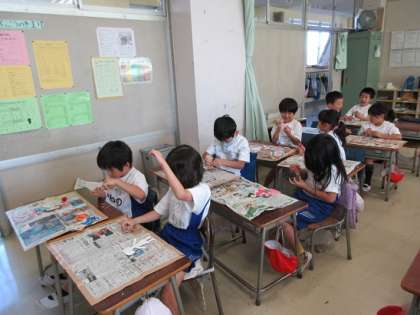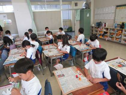 1年2組の図工の時間です。