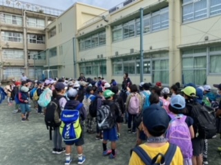 昨日の雨も上がりました。2年生はバスで出かける初めての遠足です。