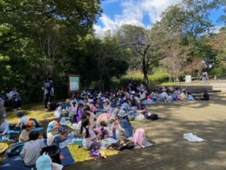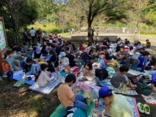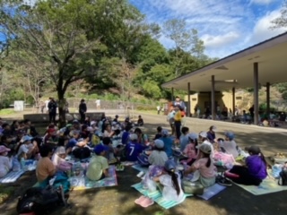 お弁当を持ってくる遠足は初めてです。青空の下で食べるお弁当は一段と美味しいですね。