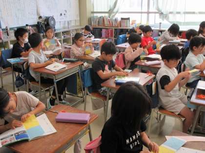 図形の学習で実際に四角や三角を切り出し、形の特徴を実感します。