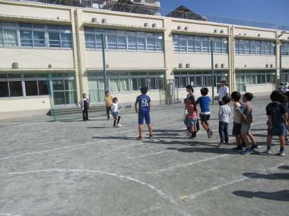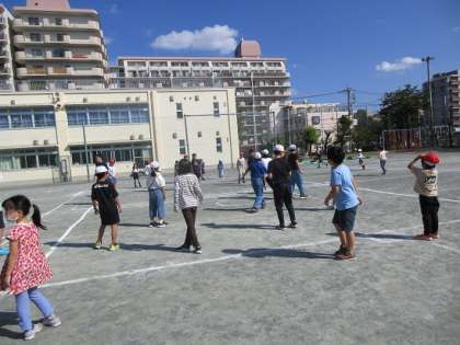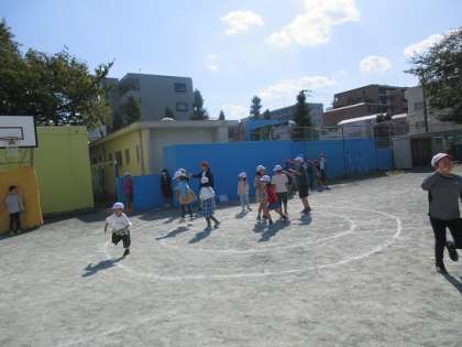 秋晴れの空で、気持ちの良い外遊びの時間でした。