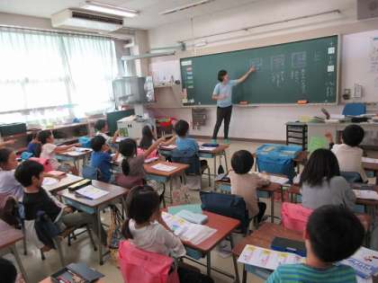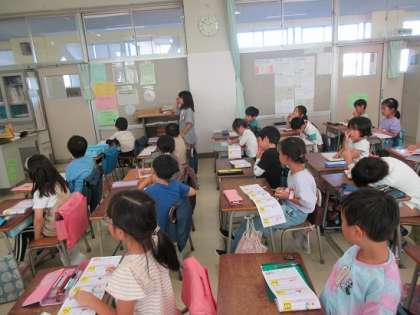 漢字の学習では、書き順など、字の形を丁寧に確認しながら進めています。