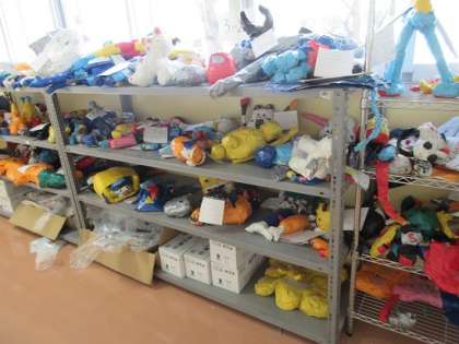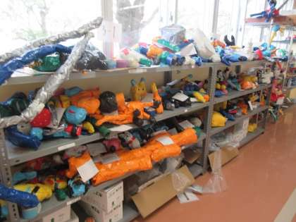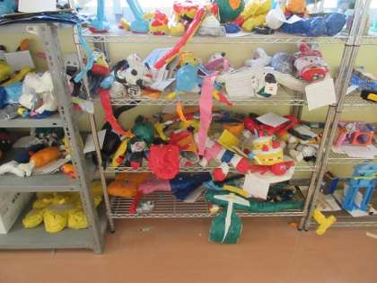 3年生は、色とりどりの布テープを使って、不思議な形や色をした生き物を作ったようです。