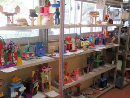 様々な形に切り取られた木材を使い、組み合わせています。