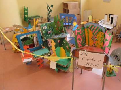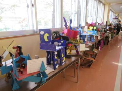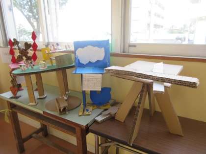 5年生は、段ボールを材料に、ちょっと変わった椅子ができています。