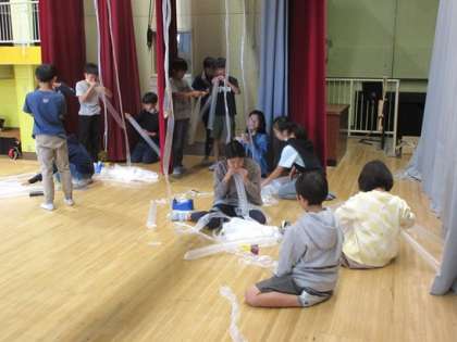 ビニールシートやビニール袋を使い、生き物を表現するようです。