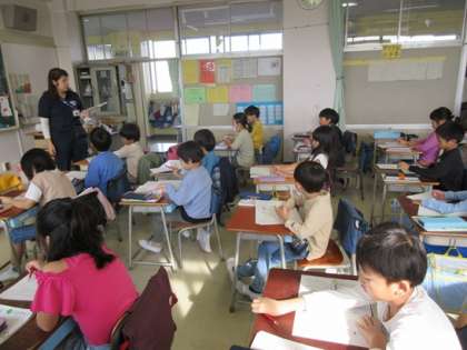 ワークシートを使って、文章の基本となる、「主語」と「述語」についえた学習を済めています。